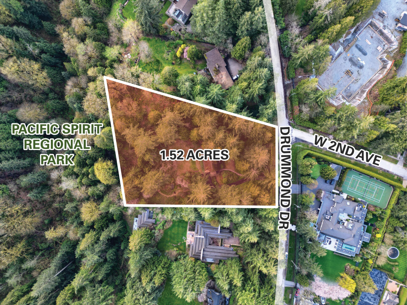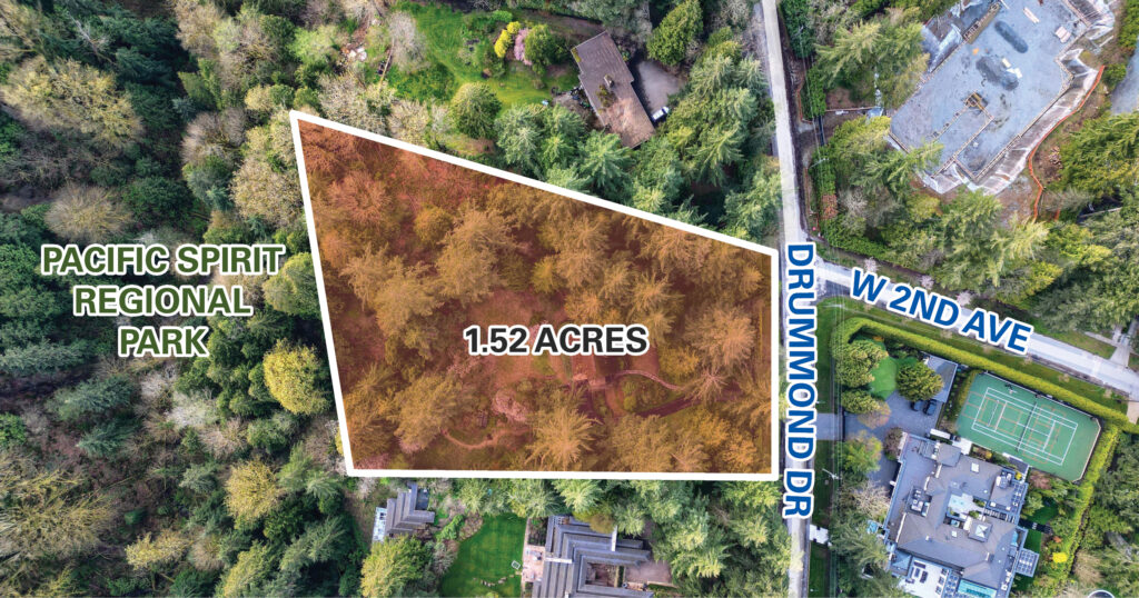 Opportunities like this rarely surface on Vancouver’s Westside. Situated on the coveted Drummond Drive in Point Grey, this 1.52-acre estate lot is a secluded sanctuary that backs directly onto Pacific Spirit Regional Park – a natural boundary that ensures enduring privacy and a lush green outlook that no future development can compromise.