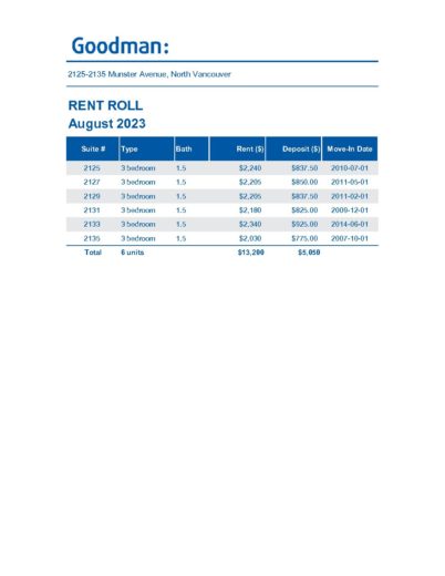 Rent Roll & Expenses – 2125 & 2135 Munster Avenue, North Vancouver