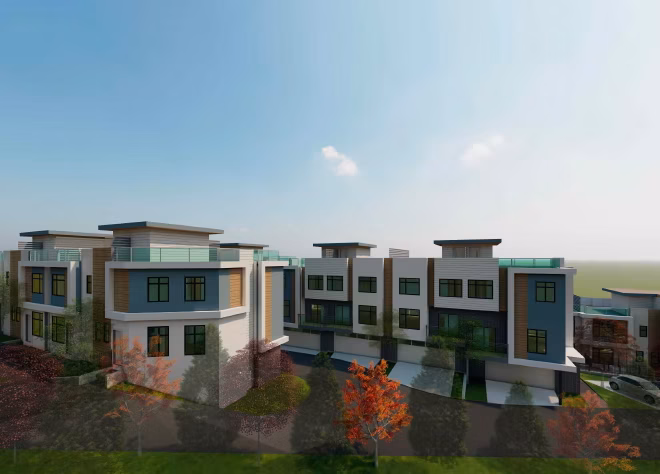 The proposed project features 22 thoughtfully designed three-bedroom townhomes across five buildings, with unit sizes ranging from 1,523 to 1,875 SF. Each residence includes a double garage and a private rooftop deck, delivering the convenience of townhouse living alongside the spaciousness and comfort typically found in single-family homes.