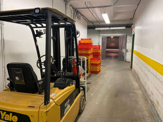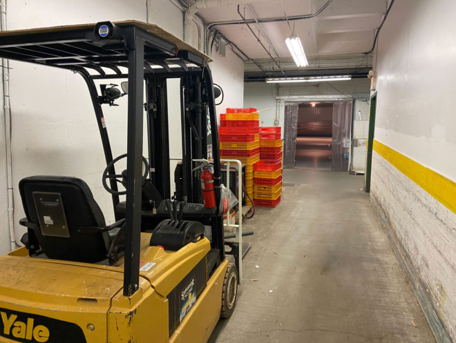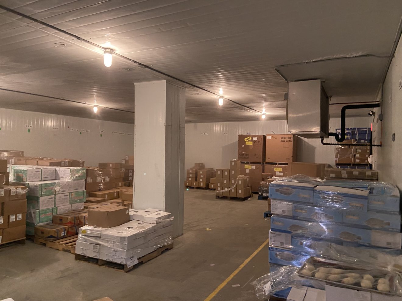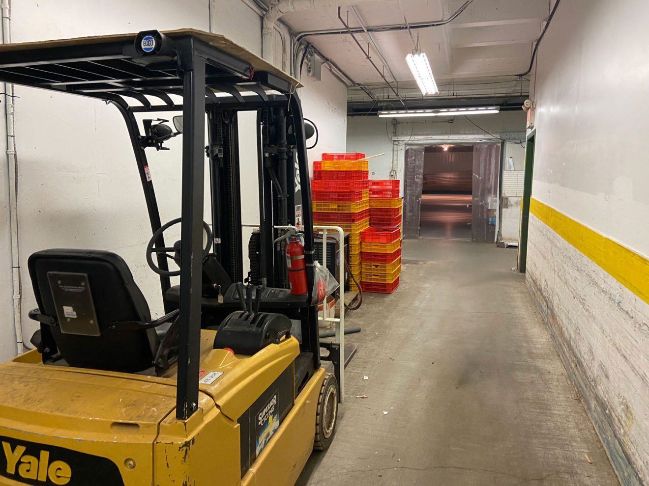 Existing improvements comprise a 21,900 SF warehouse featuring a partially above-grade basement level built out by the current tenant with massive walk-in freezers, main floor office and high-ceiling warehouse space, and mezzanine storage. The building has extensive walk-in coolers / freezers owned by the tenant that could be available for a buyer. Additional features include two dock-level loading bays and a large fenced yard / parking area (approx. 100’ x 122’) off the rear lane.