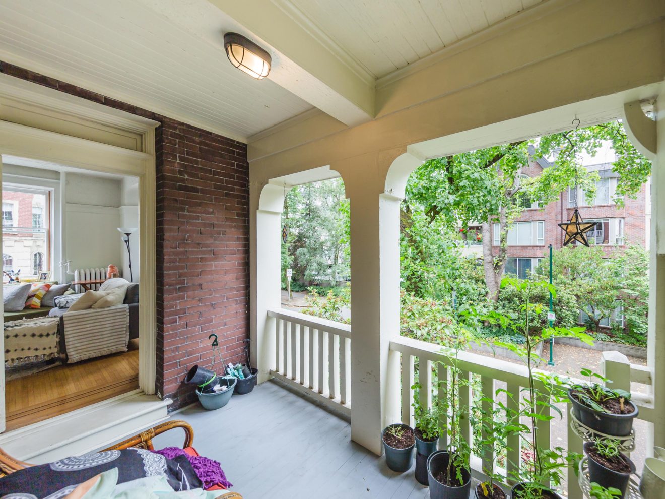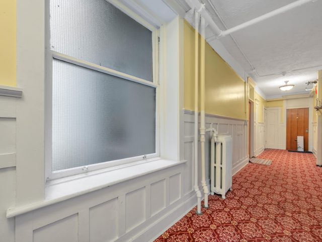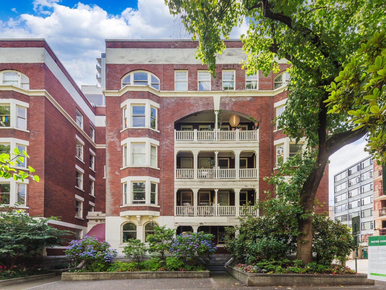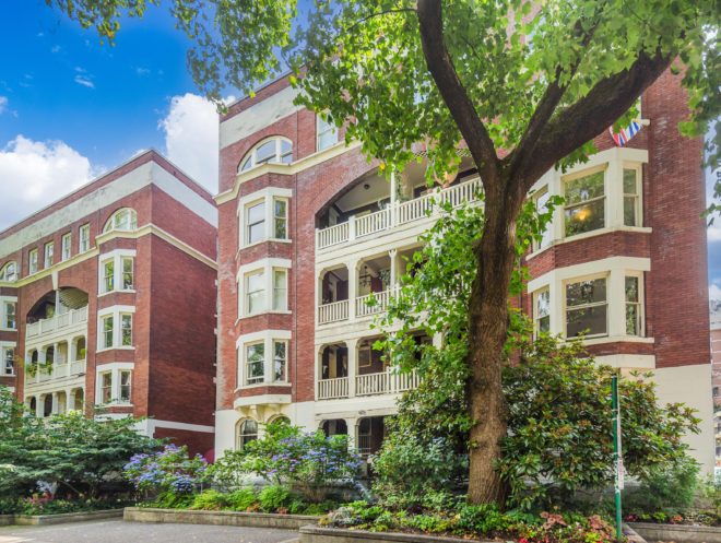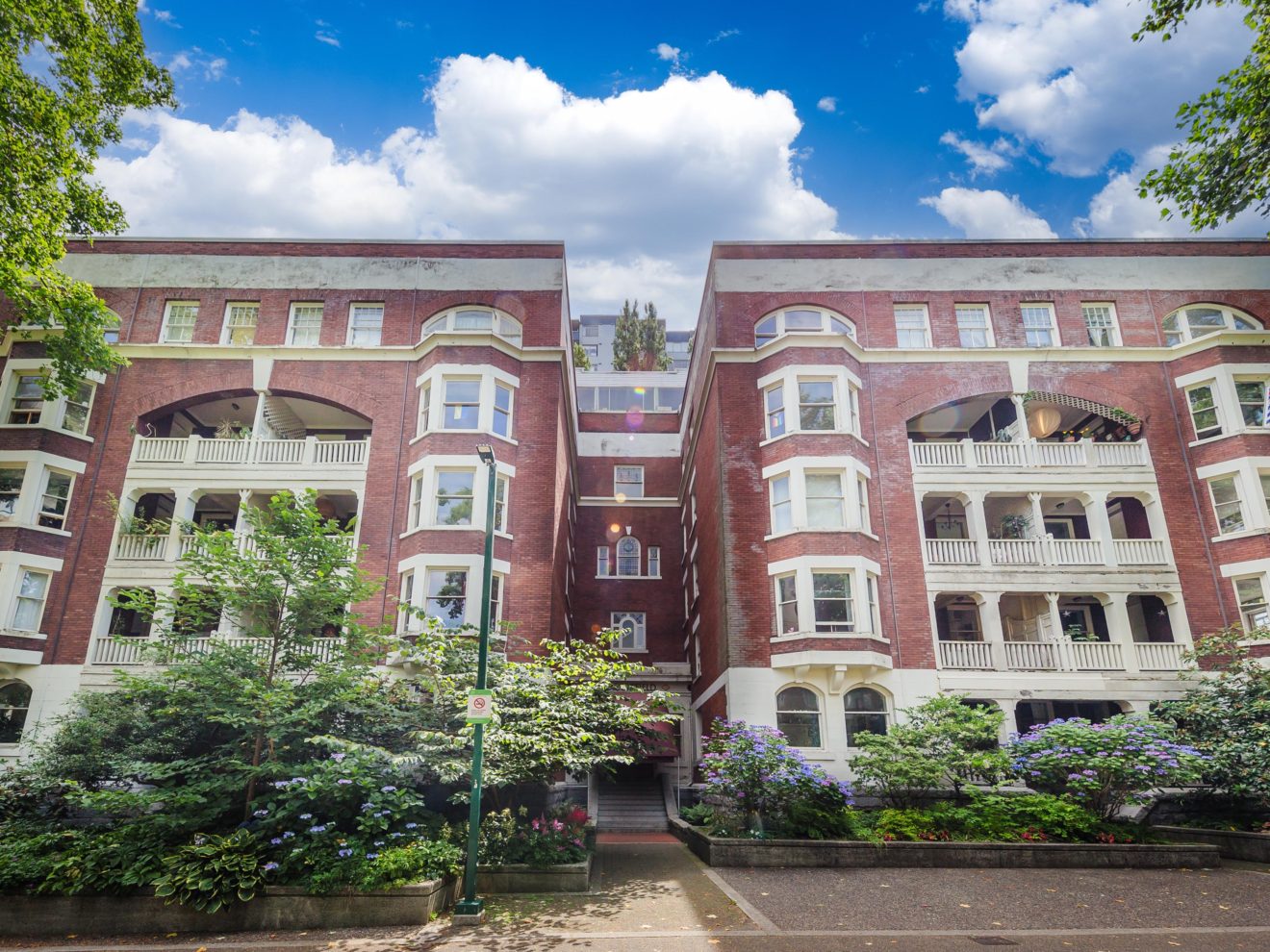 It features many of the original architectural details including hardwood and tile flooring, over height ceilings, stain glass widows, large bay windows, and a beautiful brick façade. Many suites have large weather protected balconies, fireplaces and claw-foot tubs.