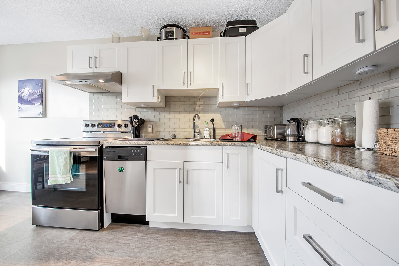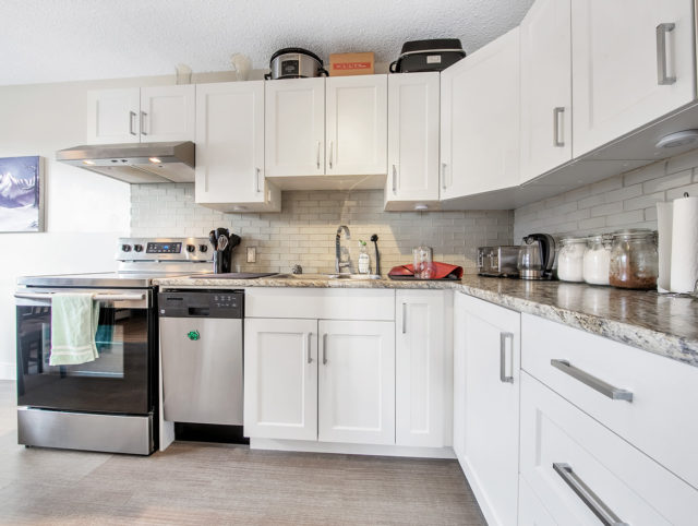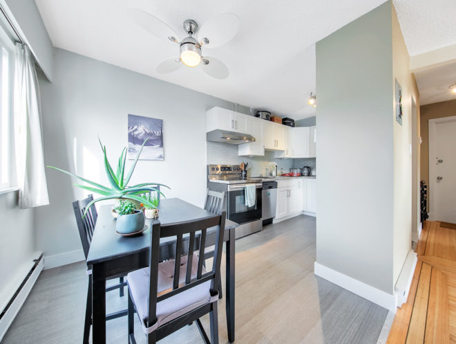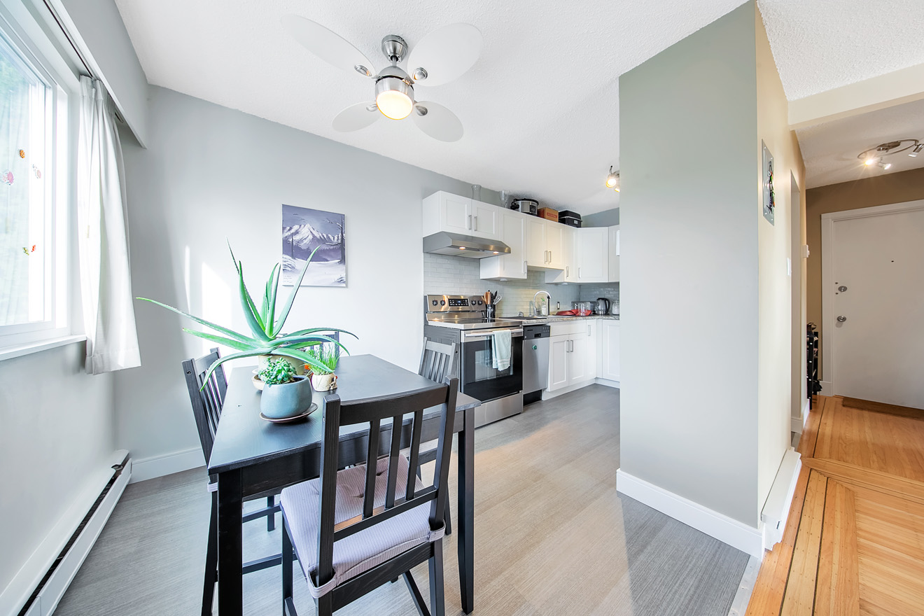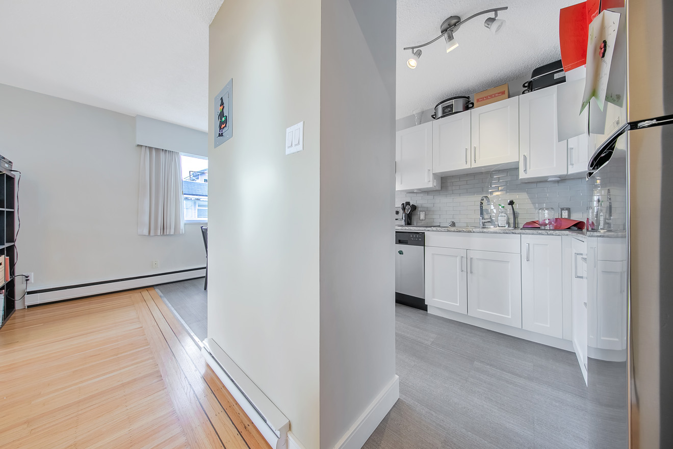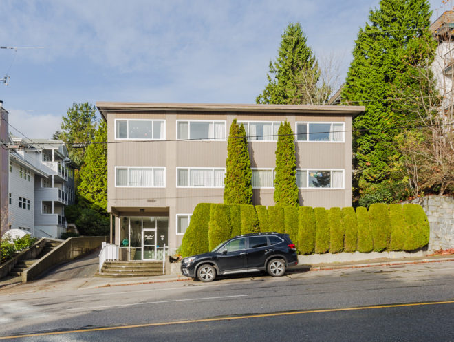 Built in 1962 and improved on an 8,158 SF RM3 zoned lot, the building’s suite mix comprises 8 one-bedrooms, 1 one + den and 1 two-bedroom, all of which have been renovated to some extent over the past 15 years. Other highlights include dishwashers in 5 of the 10 suites, 1 set of owned washer & dryer, 10 storage lockers, and 7 surface parking stalls located at the rear of the building.