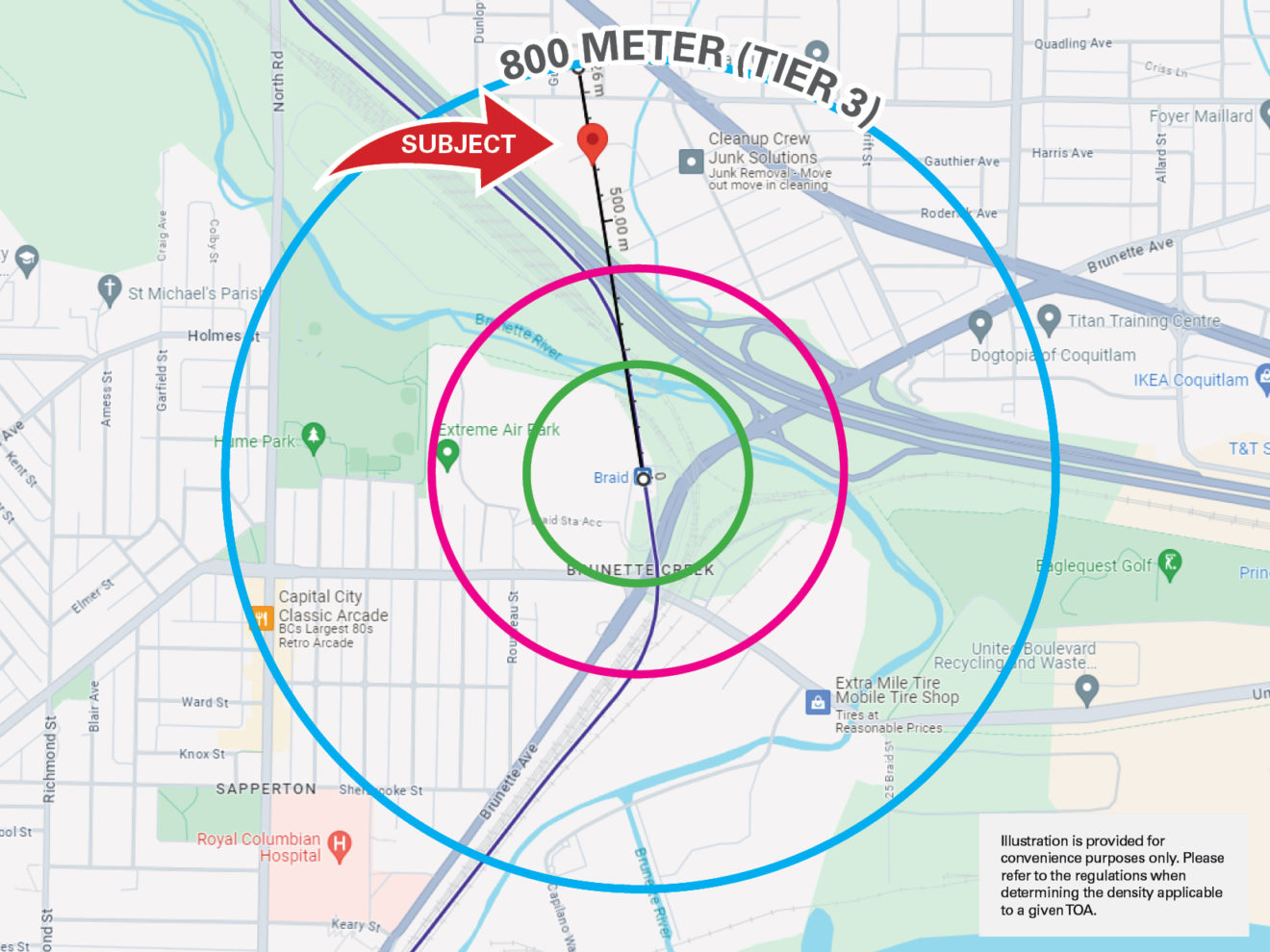 Tier 3 TOA designation applies to areas within a 400 to 800-meter radius from transit stations.