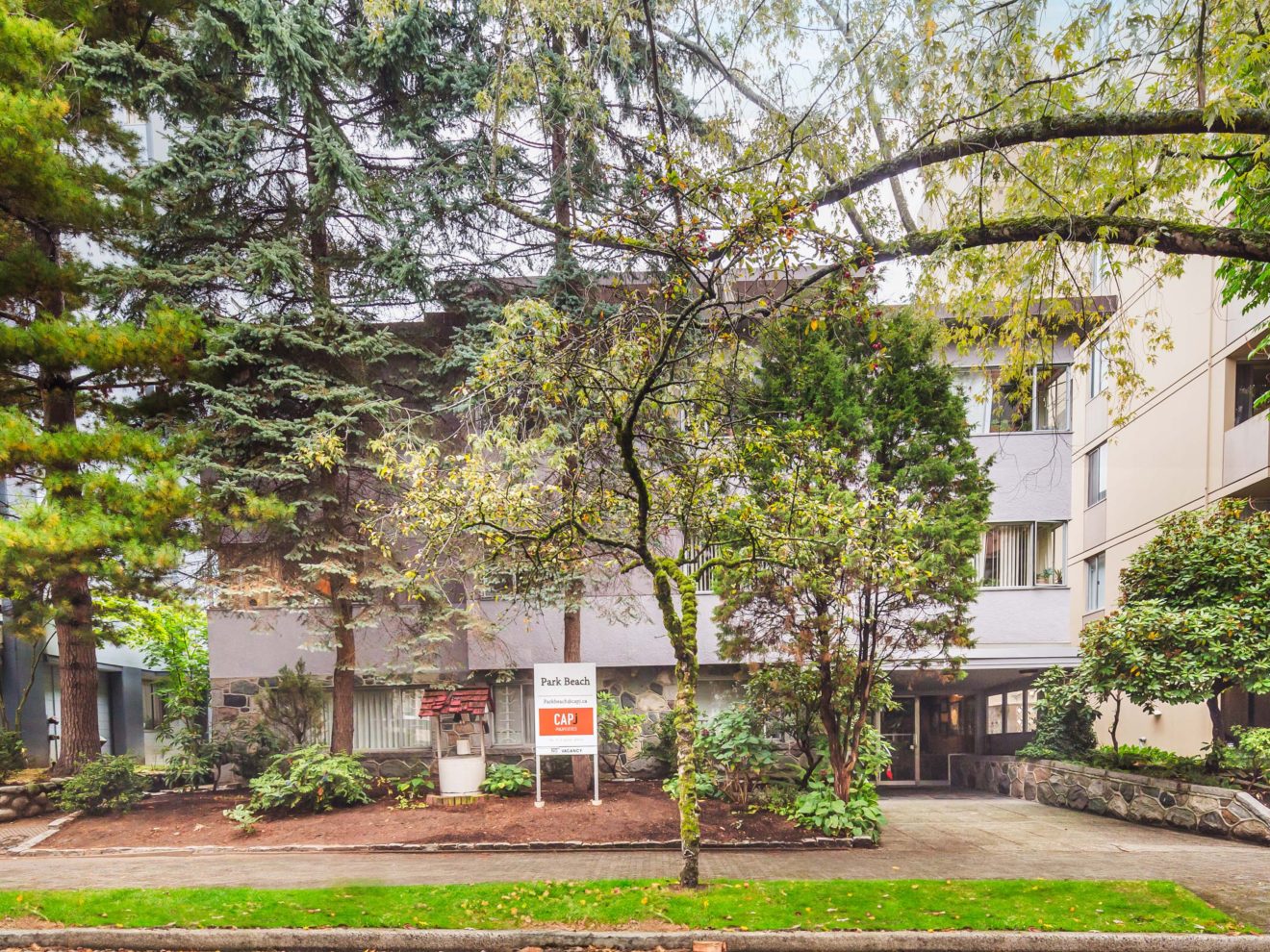 Park Beach Manor is situated on the north side of Nelson Street, between Gilford and Chilco Streets. The property is located 1.5 blocks west of Denman Street and within a short walk to the sunny beaches of English Bay and the lush greenery of the world famous thousand-acre Stanley Park.