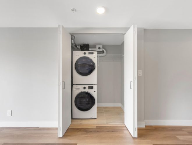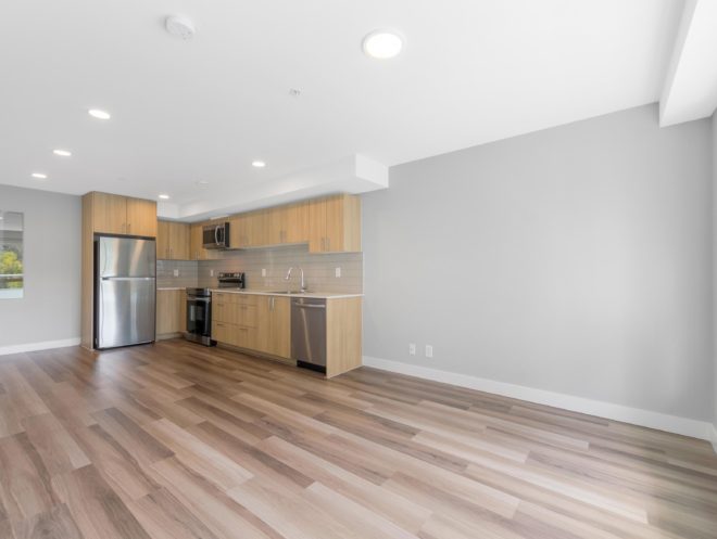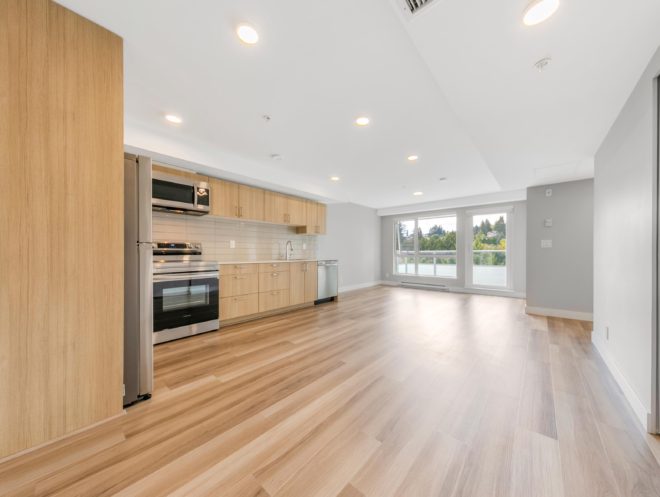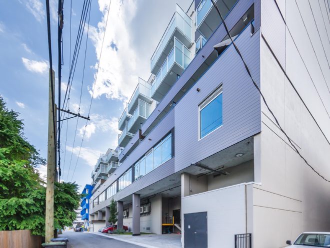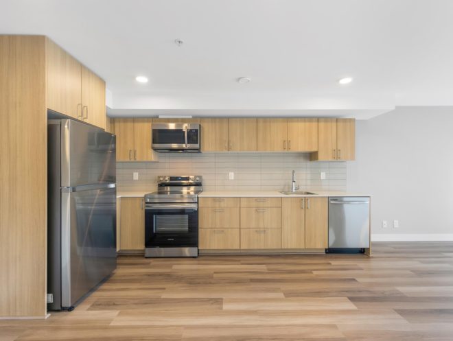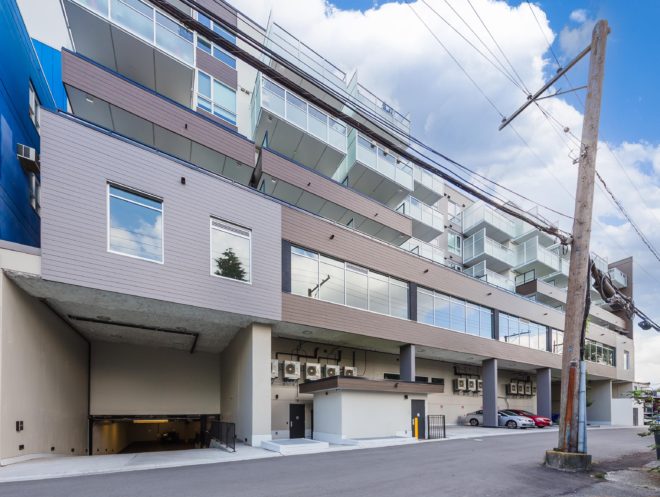 The suite mix features 44 one-bedroom, 24 two-bedroom, and 4 three-bedroom suites beautifully appointed with high quality modern finishes, in-suite laundry, and generous balconies. Residents have access to a rooftop amenity space with panoramic river and mountain views, a fully equipped fitness facility, along with ample parking and storage lockers.