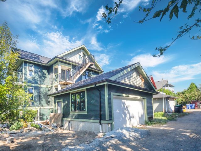 The nine private suites range from 205 to 349 SF and each feature an open living space, large accessible bathroom, and closet. Seven suites have private balconies overlooking the extensively landscaped corner lot. Common areas include a commercial kitchen, dining area, and activity / living room on the main floor; library/sitting room on the second floor; and a caretaker suite, office and storage rooms on the upper floor. A large two-car garage off the rear lane houses the laundry and utility rooms; laundry machines to be supplied by the buyer.
