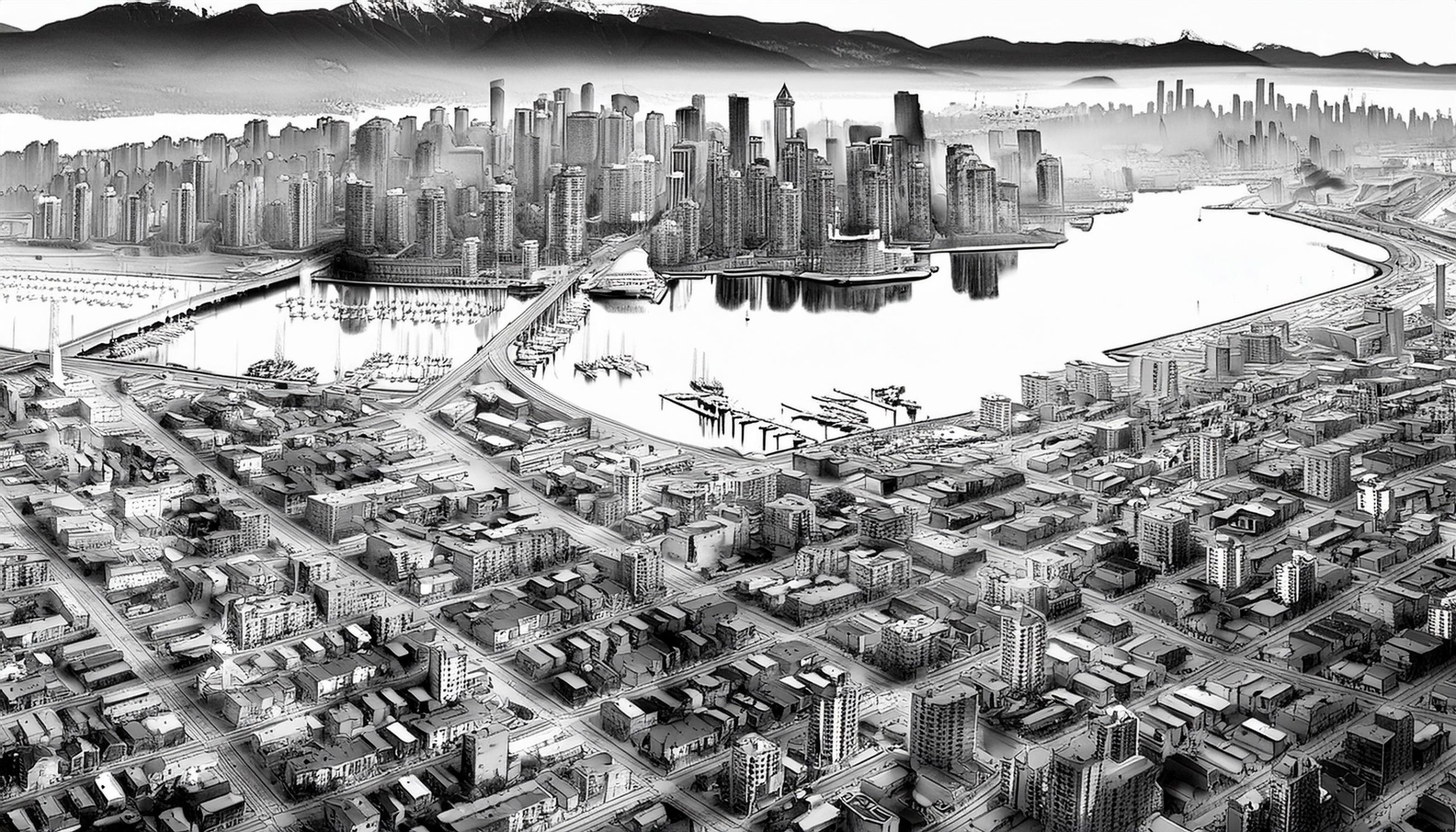 Firefly Vancouver City, in the style of fashion illustration, svetlin velinov, dark white and black, (2)