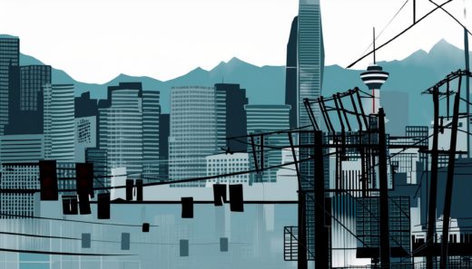 Firefly Vancouver City, in the style of simplified, ethereal, bold graphic illustrations 41683