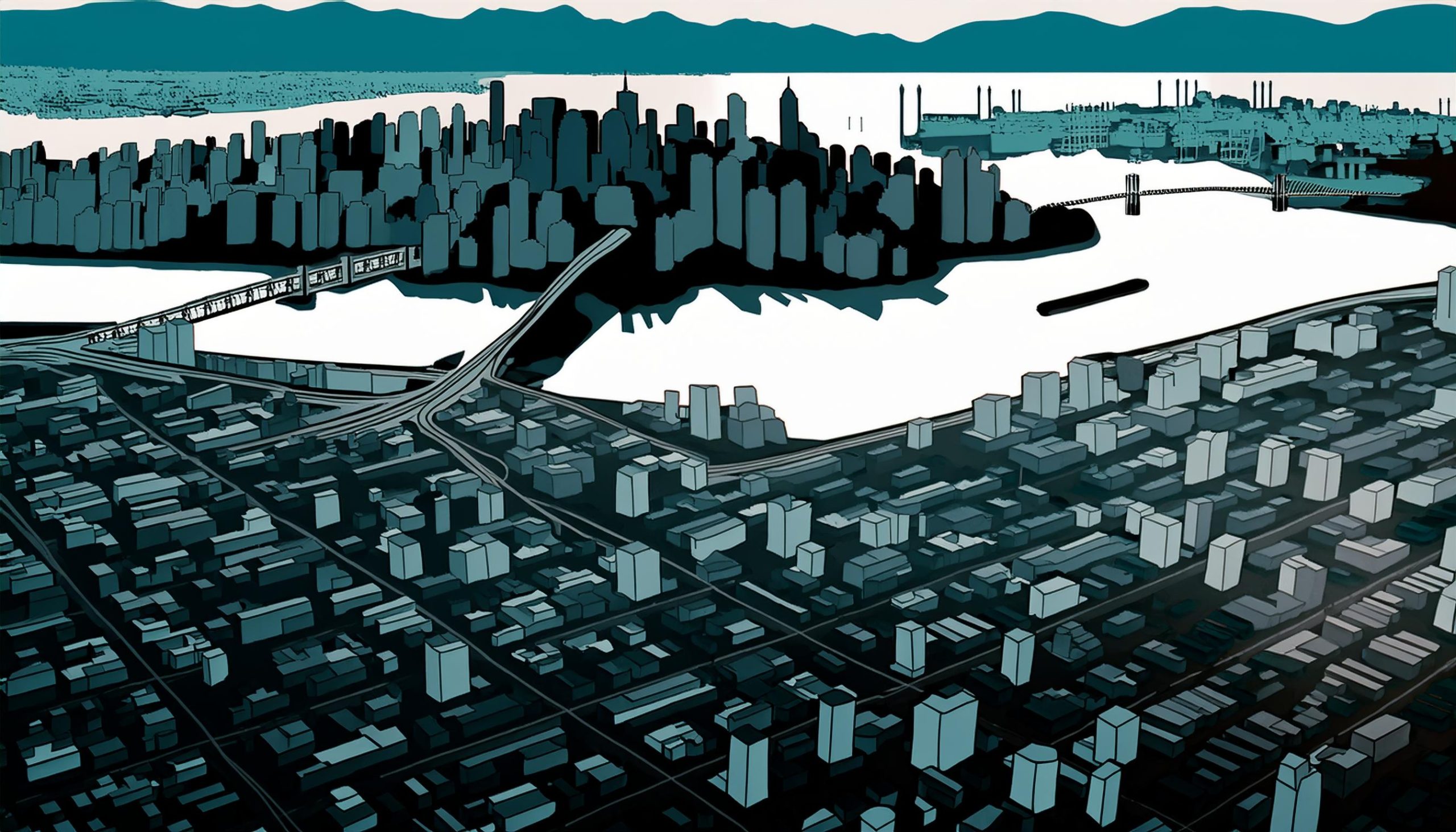 Firefly Vancouver City, in the style of simplified, ethereal, bold graphic illustrations 88067