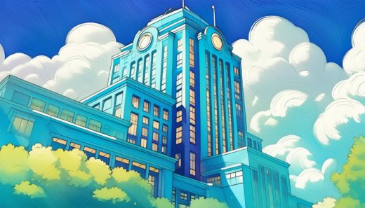 Firefly Vancouver city hall blue gradient, with white clouds floating around it. This artwork was cr (2)