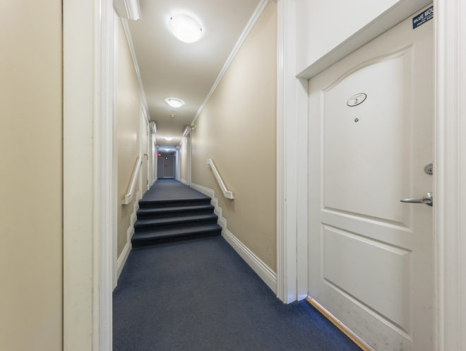- 5 commercial units: 1 unit is currently used as the residential management office—potential to convert to a ground-floor residential suite; the other 4 are retail units at grade