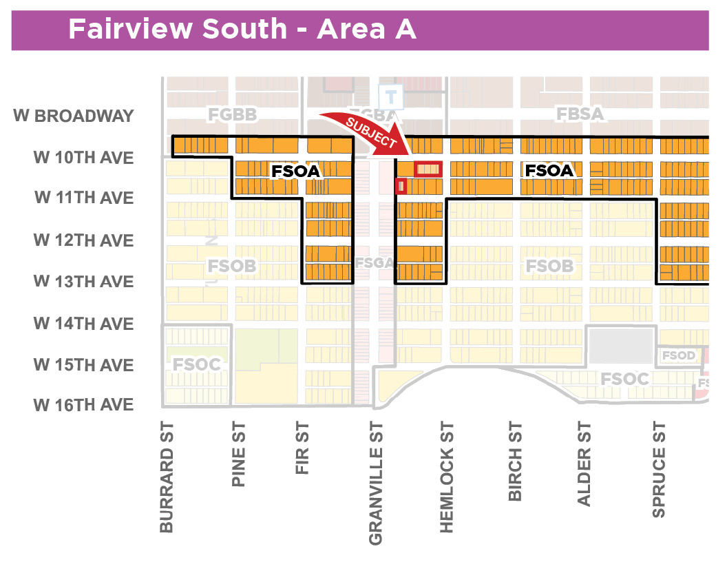 The subject properties’ fall within the policy area Fairview South – Area A. The intent of this plan, as described, is to support the long-term renewal of older residential buildings. Densities for secured market rental housing can range up to 6.5 FSR, depending on the built form.