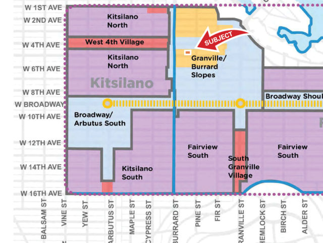 The property is positioned just one block east of Burrard Street and one block south of West 4th Avenue, providing quick access to key arterial routes. Additionally, the subject property is located within walking distance to adjoining residential districts and everyday retail amenities located on West 4th Avenue and Granville Island.
