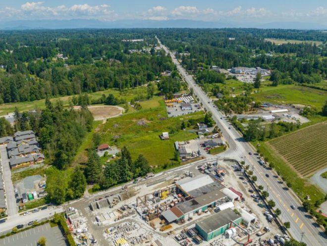 The property’s location on Fraser Highway, which runs diagonally from Surrey to Abbotsford, provides quick drive times across the Fraser Valley. Highway 1 is located 15 minutes away via 232 Street to the east or 20 minutes away via Highway 10 (Langley Bypass) to the west. Access to these major routes provide convenient travel to communities across the Lower Mainland, while the Langley Regional Airport and nearby border crossings open up travel to communities and markets further afield. The Aldergrove – Lynden border crossing is located 16 minutes to the south.