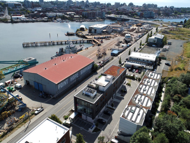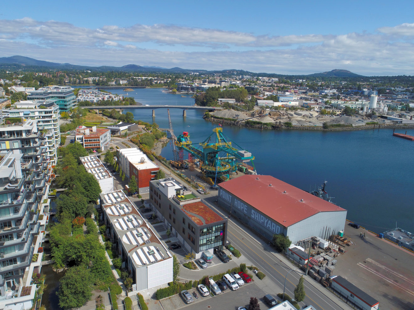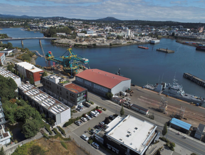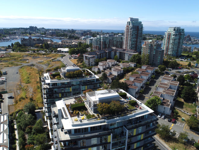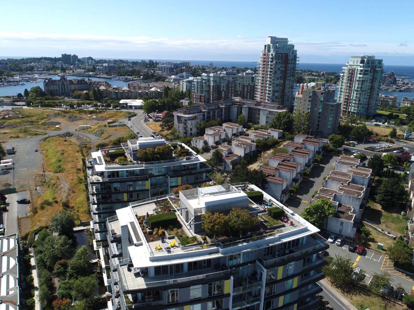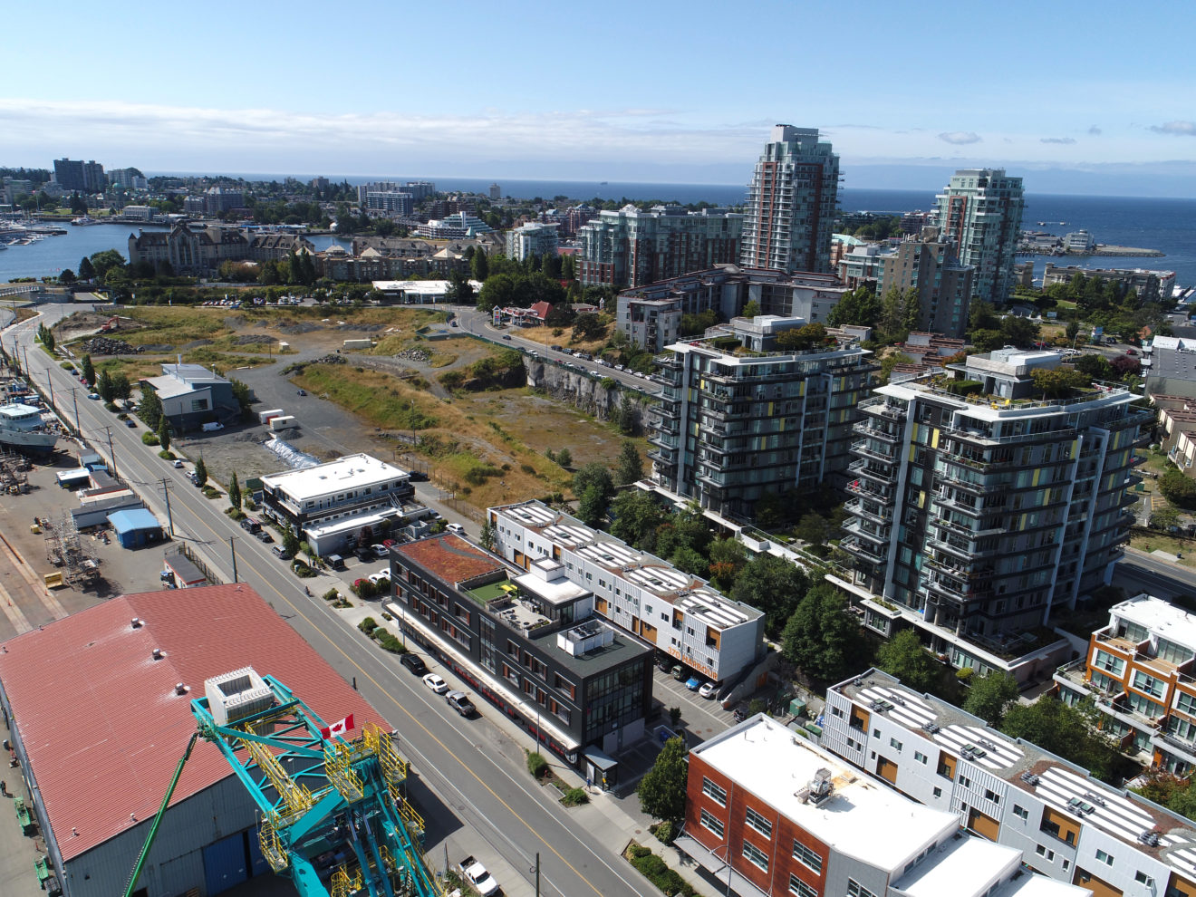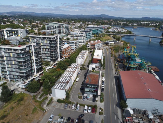 The subject property is immediately west of Downtown via the new Johnson Street Bridge in Dockside Green and the neighborhood of Victoria West (or “Vic West”). Vic West is a downtown-adjacent peninsula bordered to the south and east by the Upper Harbour. Ideally situated at the entrance to Vic West from Downtown, Dockside Green is a socially vibrant, ecologically restorative and economically robust community, defined by a distinct collection of beautifully designed live, work, play and rest spaces uniquely tailored to enhance the health and well-being of both people and ecosystems.