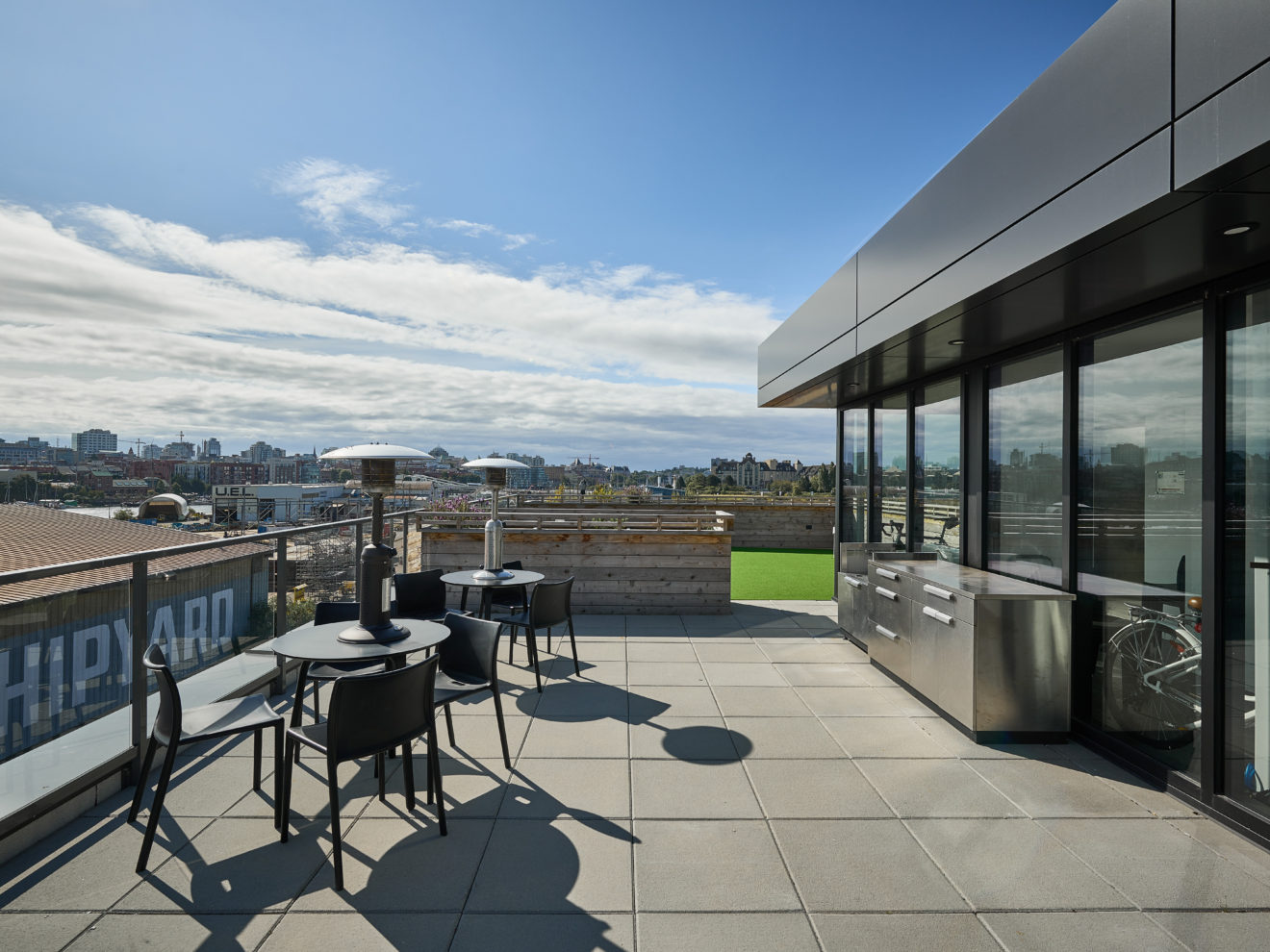 Constructed of steel frame and concrete foundation, there is one elevator servicing the building. The upper two floors can be combined or leased separately, and there is a common-use 693 SF rooftop deck, with sweeping views of Downtown Victoria and the Inner Harbour.