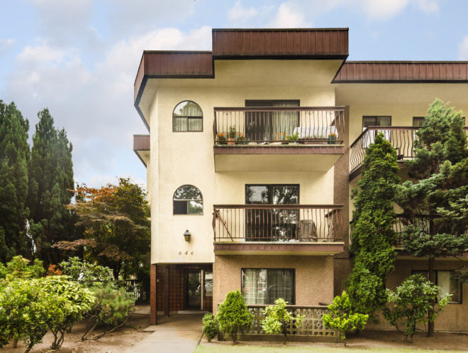 The subject property is a 16-suite three-storey walk-up apartment building located on a beautiful tree-lined street in Vancouver’s Main / Fraser neighbourhood. Built in 1984 on a 12,078 SF lot, the building features a suite mix of 2 bachelors, 8 one-bedrooms and 6 two-bedrooms.
