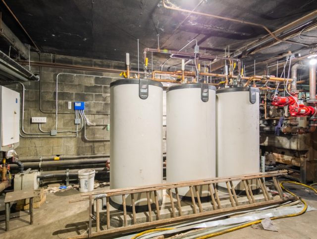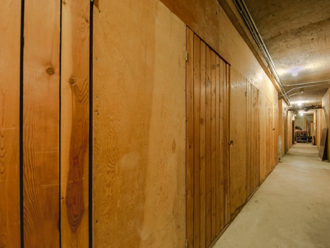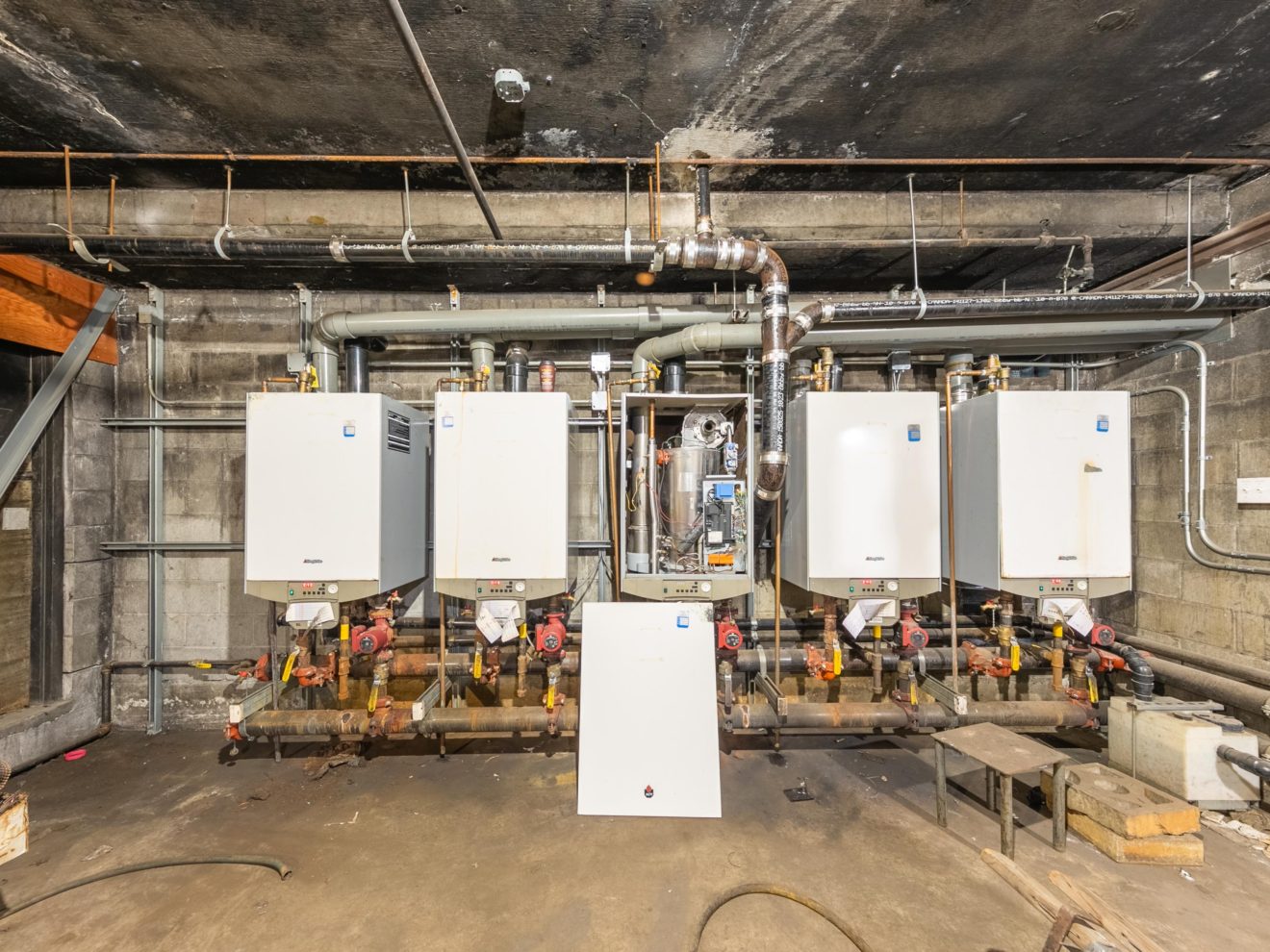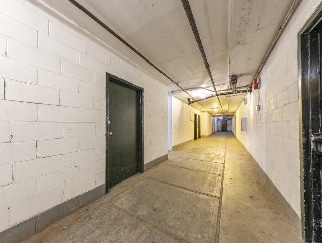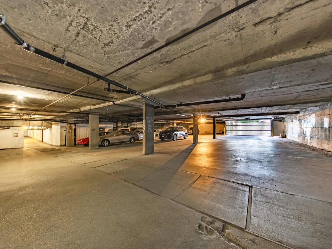 The building features elevator service (2 elevators), secured underground parking (92 stalls), storage lockers, big workshop, and owned laundry facilities on floors 2 to 5.