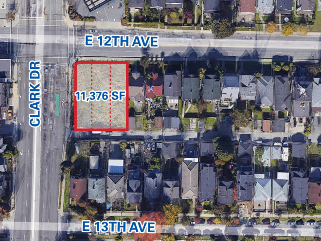 Opportunity to acquire a high-exposure 11,376 SF corner site strategically situated on the southeast corner of E. 12th Avenue and Clark Drive in Vancouver.