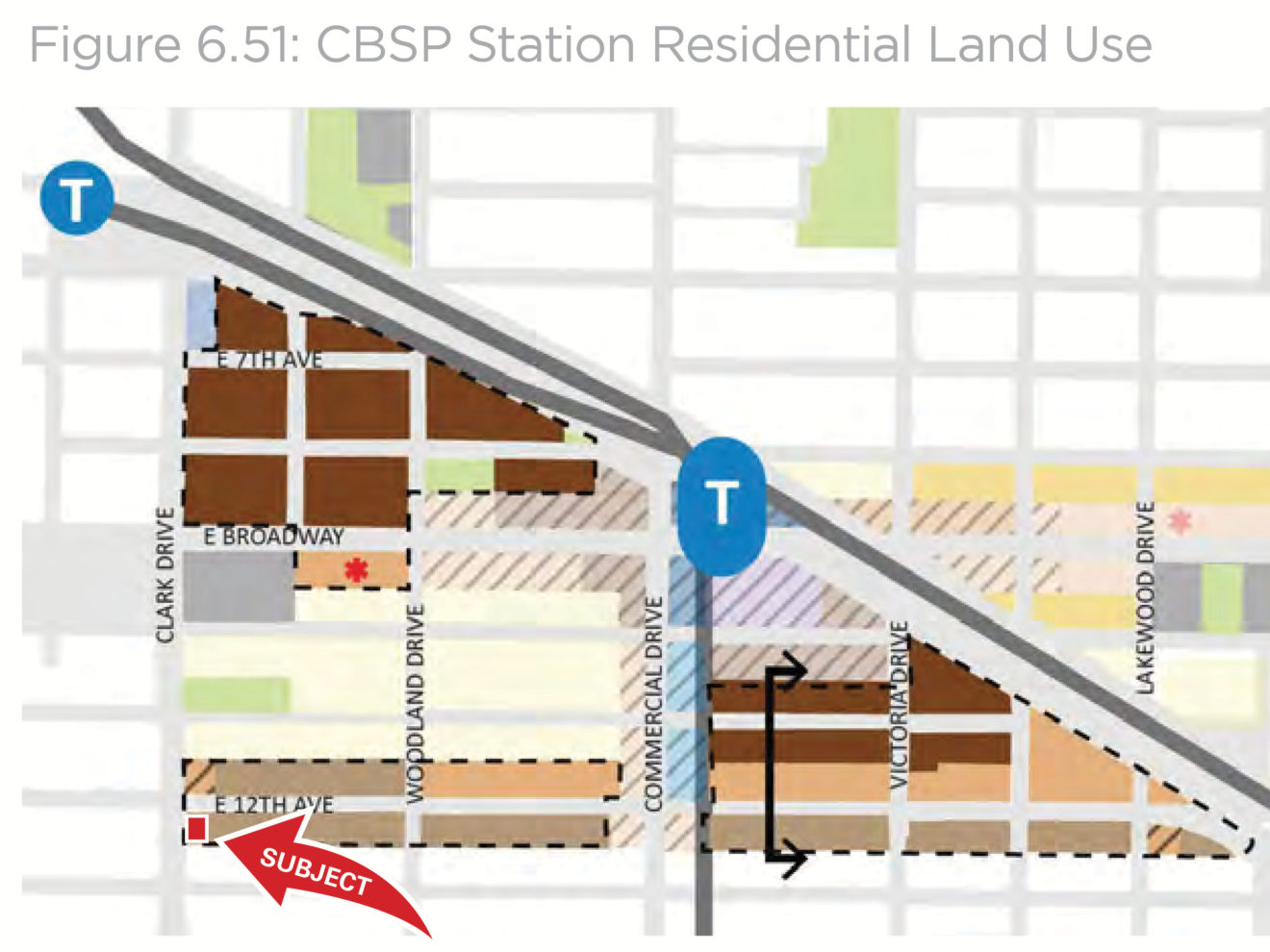 The subject property sits in the Grandview-Woodland Community Plan and allows for residential buildings up to 4 storeys with potential small-scale retail and commercial at grade (up to 1.7 FSR). There is potential for increased density up to 6 storeys based upon a rental scenario (up to 3.0 FSR). An enquiry letter has been submitted with a response available.