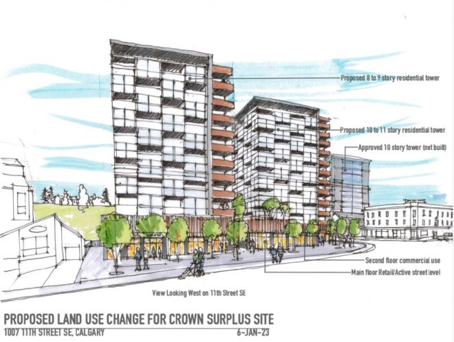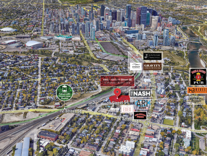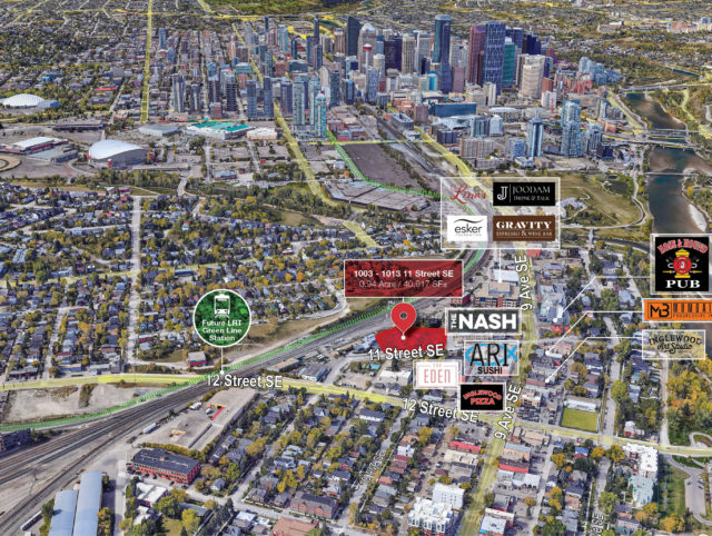 The site is located at the southwest corner of 11 Street SE and 10 Avenue SE, one block south of 9 Avenue SE, the main thoroughfare and commercial corridor, and one block north of the future Ramsay-Inglewood Green Line LRT Station. As part of the new LRT rapid transit line, the City of Calgary’s Ramsay-Inglewood Station Area Improvements project will provide public realm improvements, including the streets adjacent to this site, along with parks and pathways throughout the neighbourhoods of Inglewood and Ramsay.
