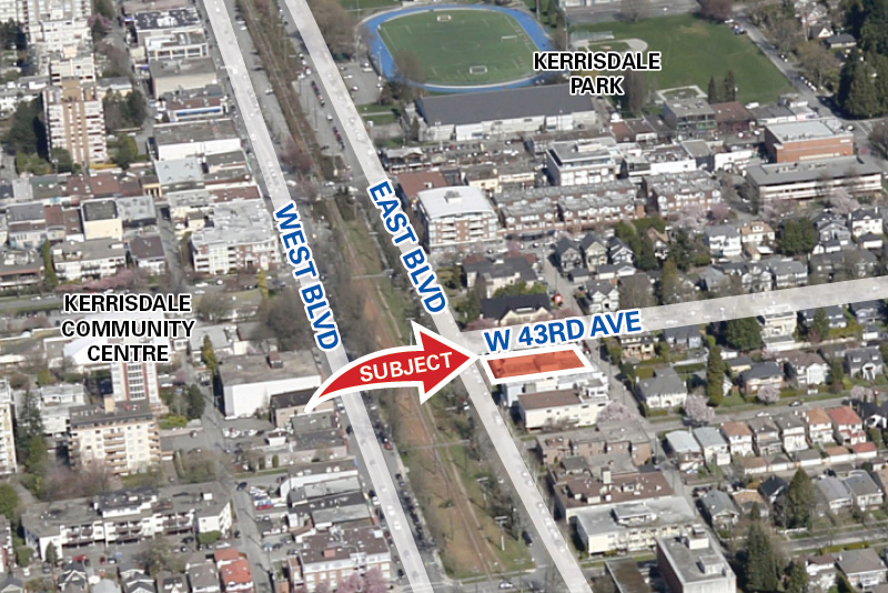 Oakwood Terrace is located on the southeast corner of East Boulevard and West 43rd Avenue in Kerrisdale, one of Vancouver’s oldest and most affluent neighbourhoods.