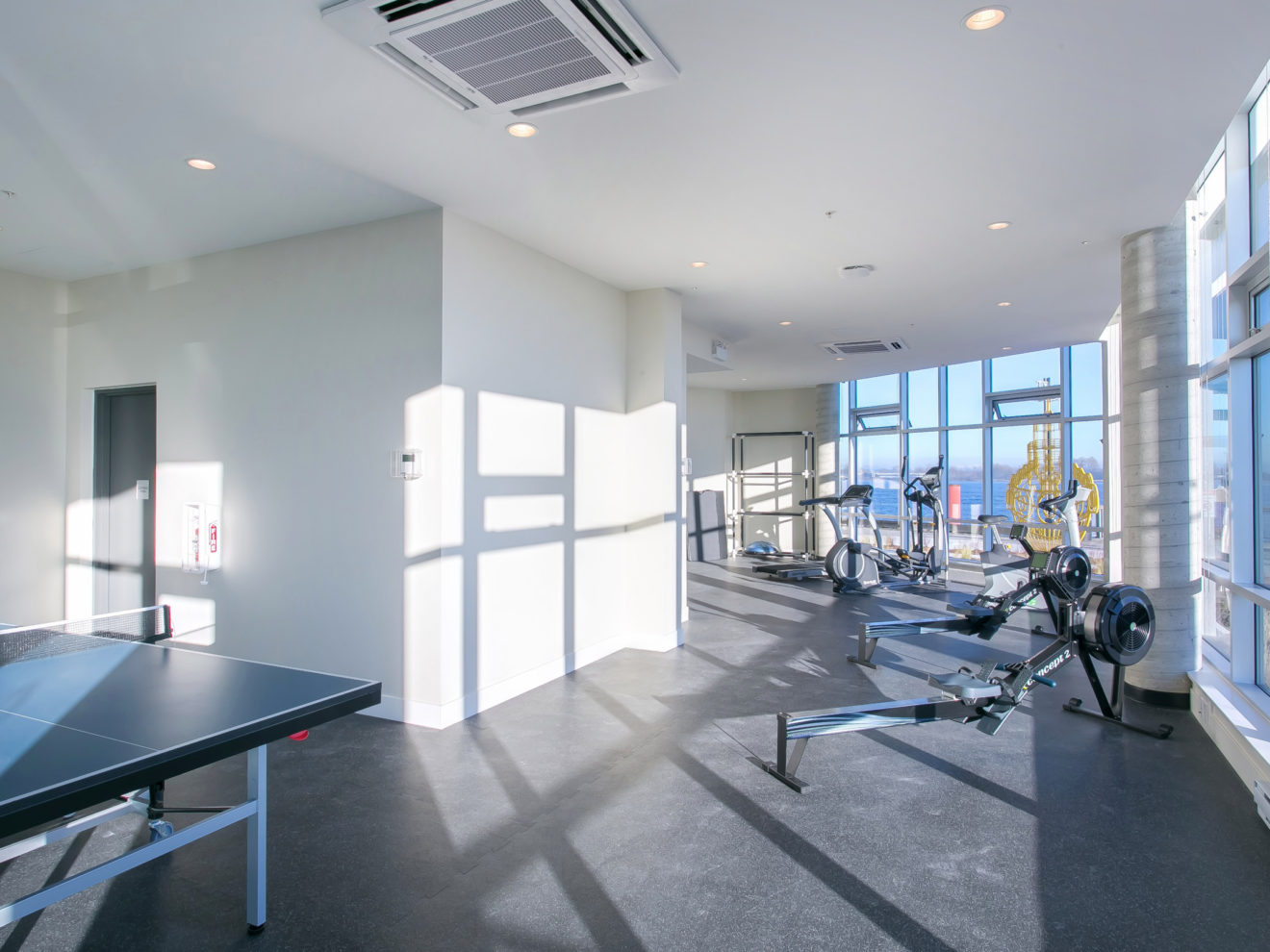 - Amenities include bike / tenant storage lockers, an air-conditioned meeting room and resident-only fitness facility with spectacular views of the waterfront