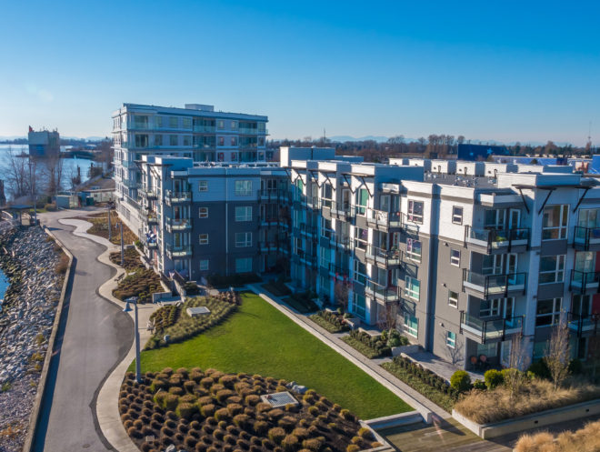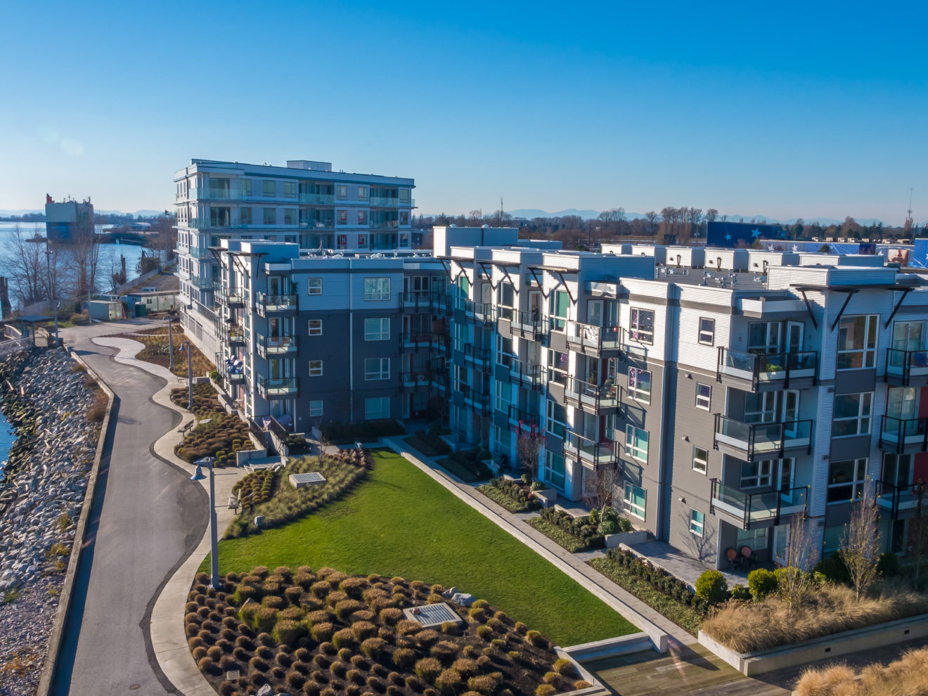 Riverport Flats is optimally located in beautiful Richmond, BC. Two newer signature rental buildings, R5 & R4, are perched at the waterfront immediately next door to a vast array of recreation, entertainment and leisure facilities at the Riverport Sports and Entertainment Complex. There is convenient transit service and a full range of shopping choices just a couple of minutes away at Ironwood Plaza and Coppersmith Place. Tenants also enjoy the alluring appeal of the rural environment surrounding Riverport Flats and the convenience of cycling Richmond’s agricultural back roads. A stroll along the waterfront promenade leads to an even more serene trail through one of Richmond’s waterfront nature preserves.