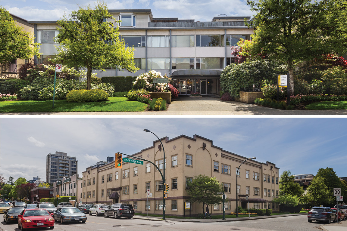 The properties are located in a walker’s paradise just east of Granville Street in Vancouver’s prized South Granville neighbourhood. The Georgian sits on the southwest corner of Hemlock and West 10th Avenue and abuts the Clairmont to the west.