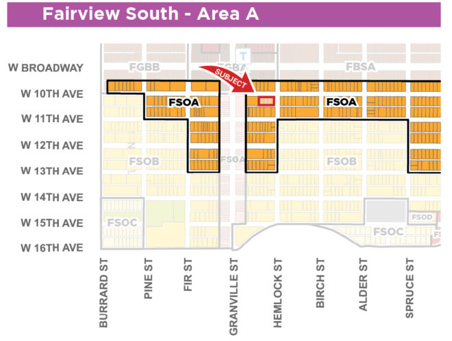 The subject properties’ fall within the policy area Fairview South – Area A. The intent of this plan, as described, is to support the long-term renewal of older residential buildings. Densities for secured market rental housing can range up to 6.5 FSR, depending on the built form.