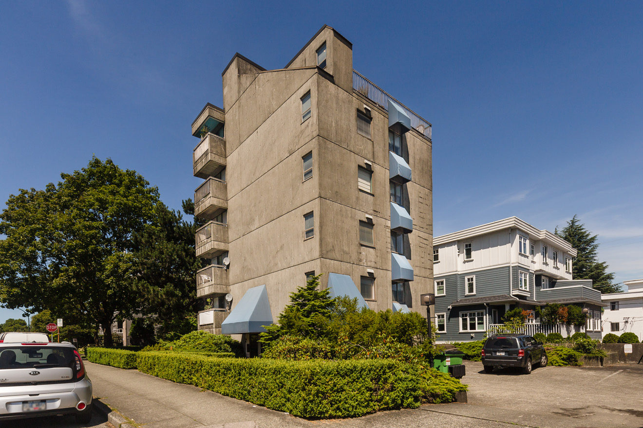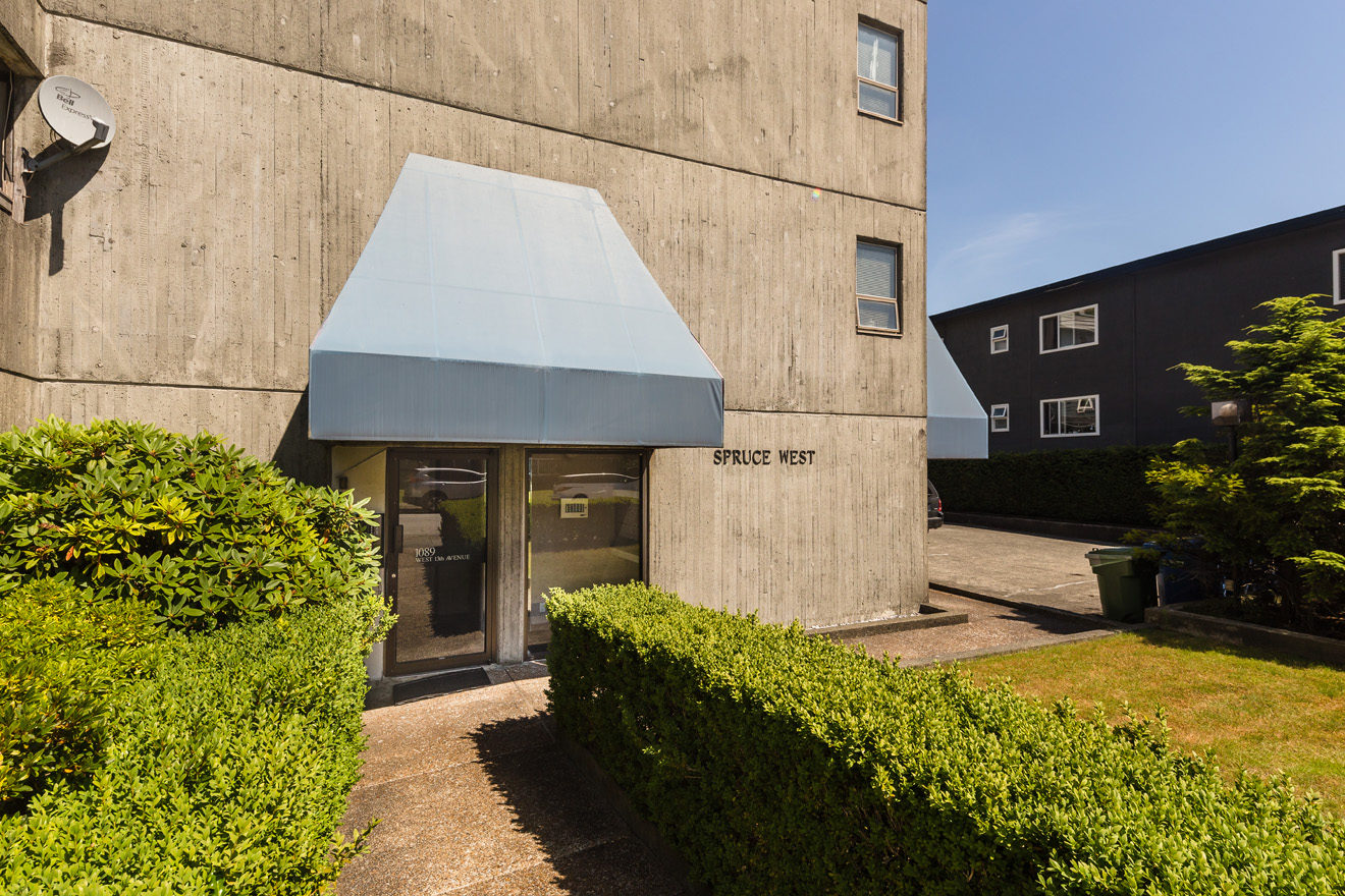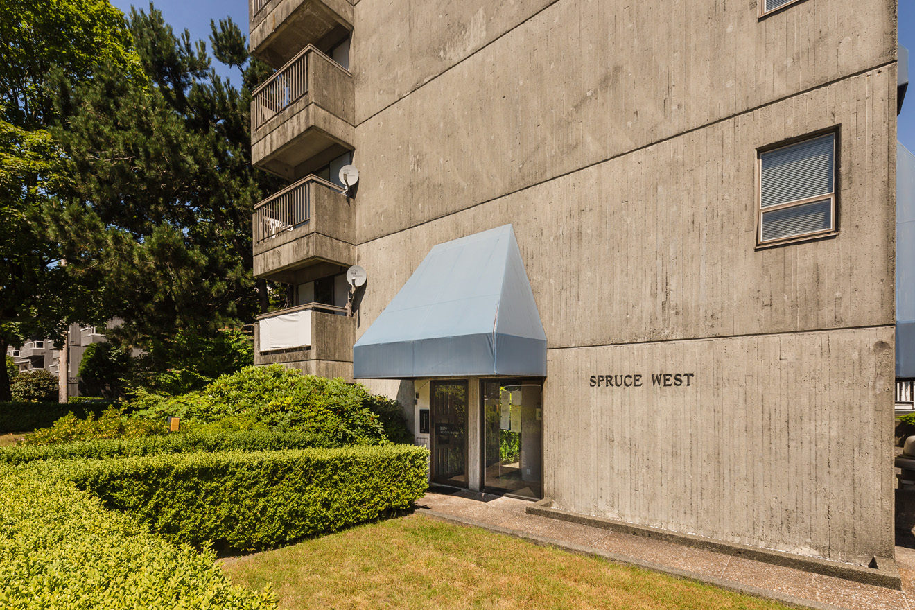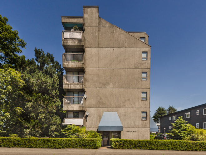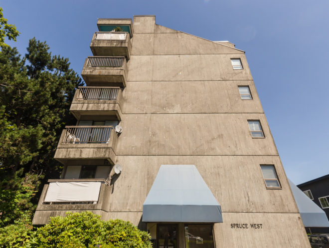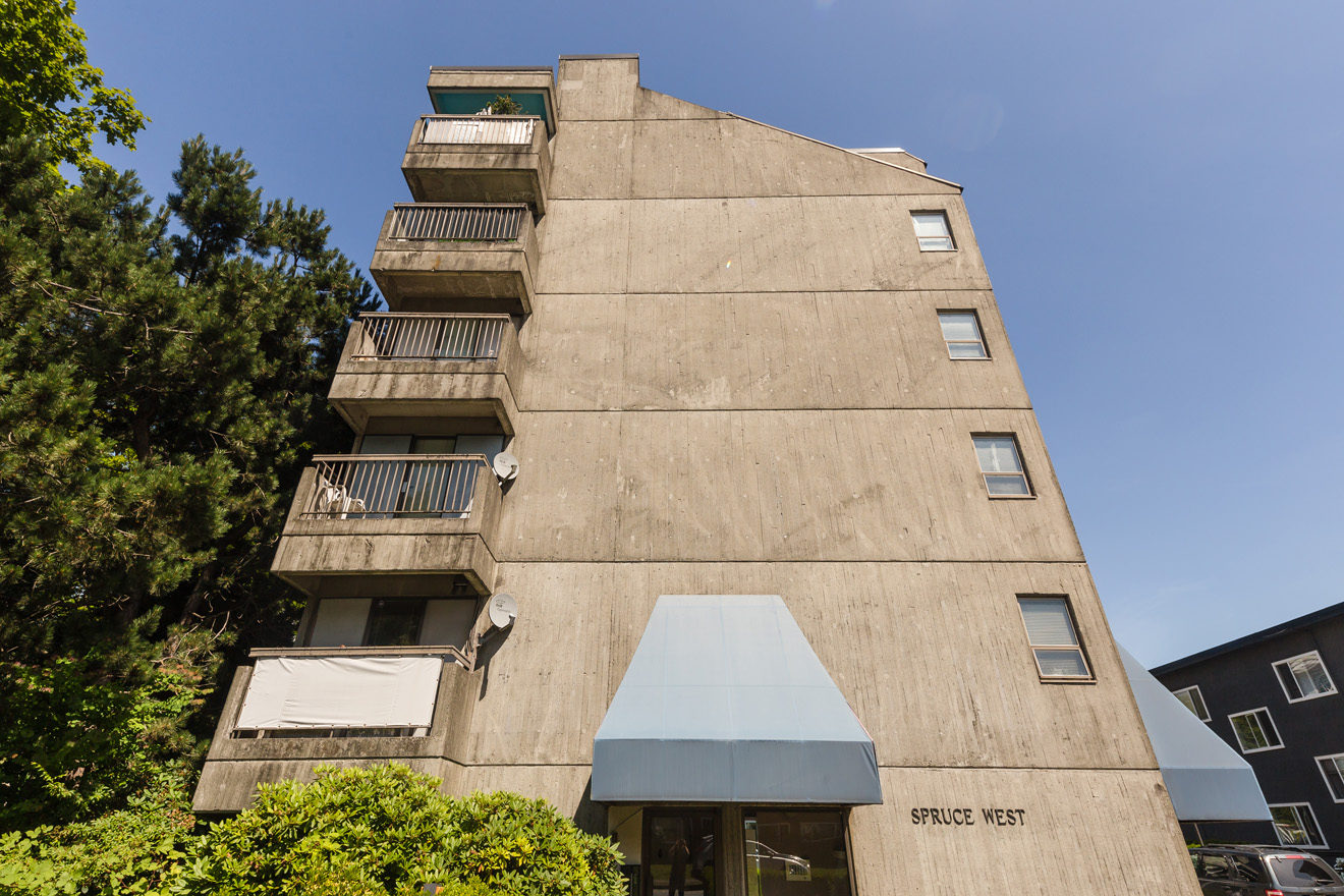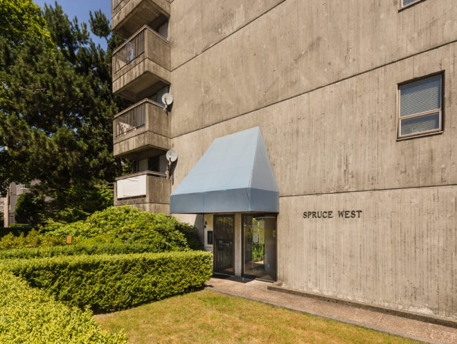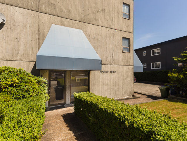 Spruce West is a 6-unit, 6-storey concrete multi-family strata building located in Vancouver’s popular Fairview neighborhood. Built in 1977 on a 6,250 SF corner lot, the building comprises one large unit per floor (avg. 956 SF) each with 1 full bathroom and 1 powder room. Other building features include balconies, storage (6 lockers), elevator services, 6 underground parking stalls and surface parking. The top floor unit also features a large patio roof top deck with panoramic views of the North Shore Mountains, False Creek and Vancouver’s urban landscape.