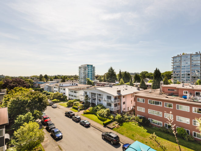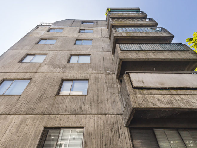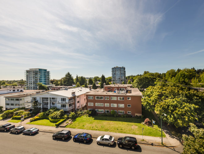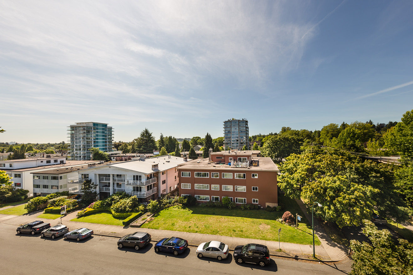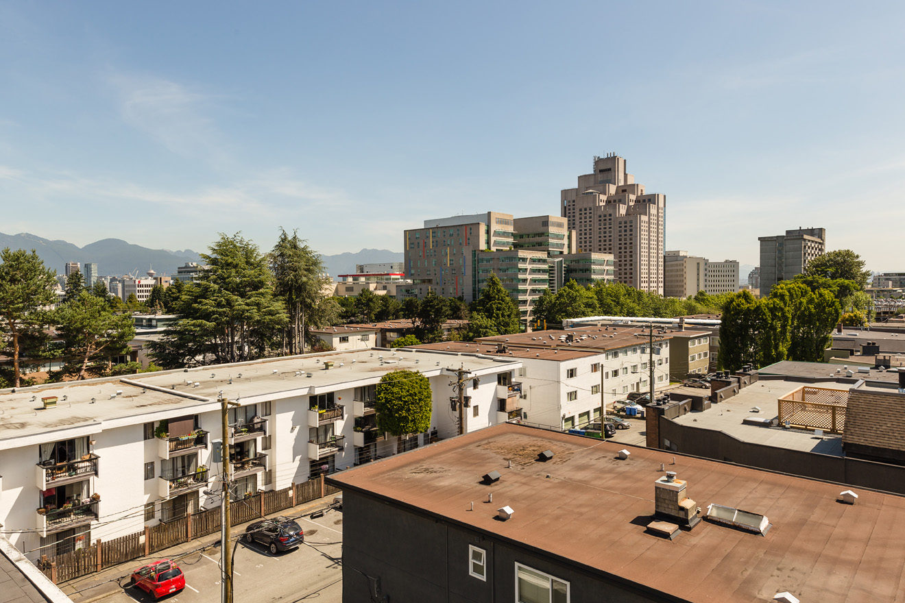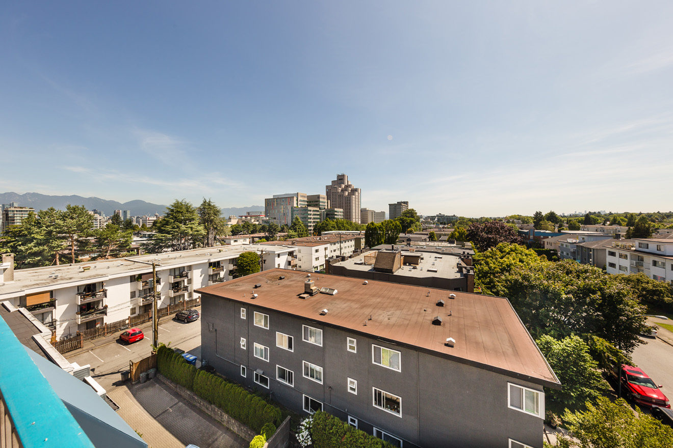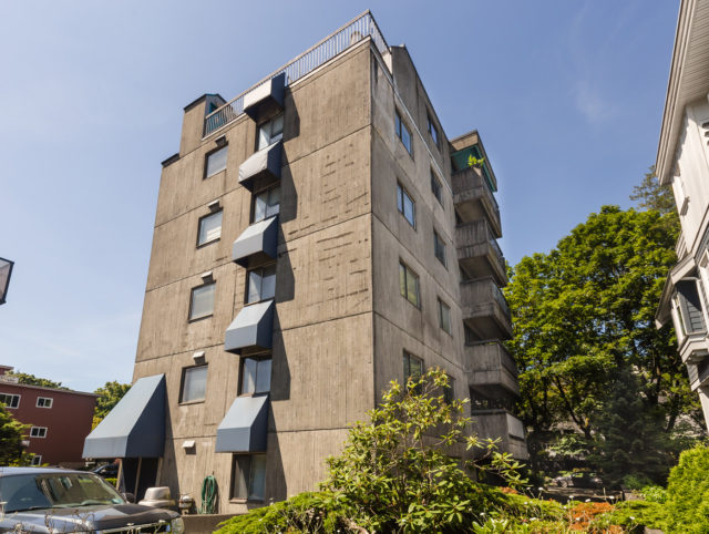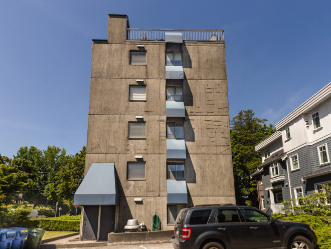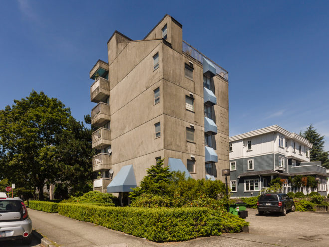 Spruce West is a 6-unit, 6-storey concrete multi-family strata building located in Vancouver’s popular Fairview neighborhood. Built in 1977 on a 6,250 SF corner lot, the building comprises one large unit per floor (avg. 956 SF) each with 1 full bathroom and 1 powder room. Other building features include balconies, storage (6 lockers), elevator services, 6 underground parking stalls and surface parking. The top floor unit also features a large patio roof top deck with panoramic views of the North Shore Mountains, False Creek and Vancouver’s urban landscape.
