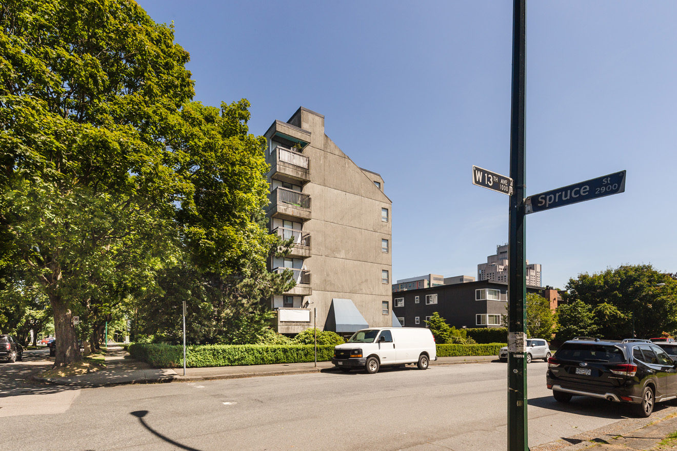 Spruce West is located in Vancouver’s Fairview neighbourhood, situated in a walker’s paradise just 4 blocks west of Granville Street on the on northeast corner of Spruce St and W 13th Ave. West Broadway and West 12th Avenue form the major east-west traffic arteries across the city (direct bus access to UBC), while Granville Street is the major nearby north-south traffic corridor which provide access to and from the downtown core and South Richmond (YVR).